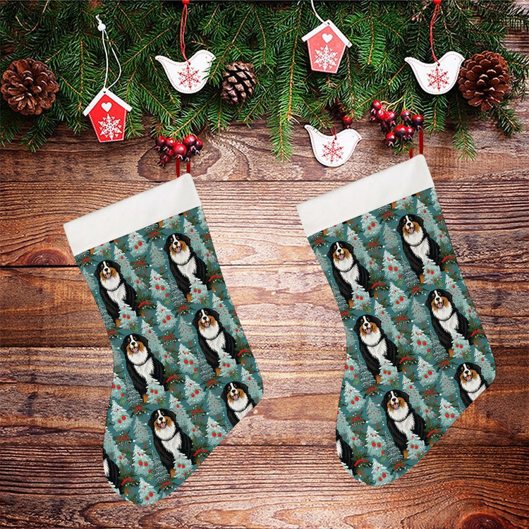 Winter Whimsy Bernese Mountain Dog Christmas Stocking