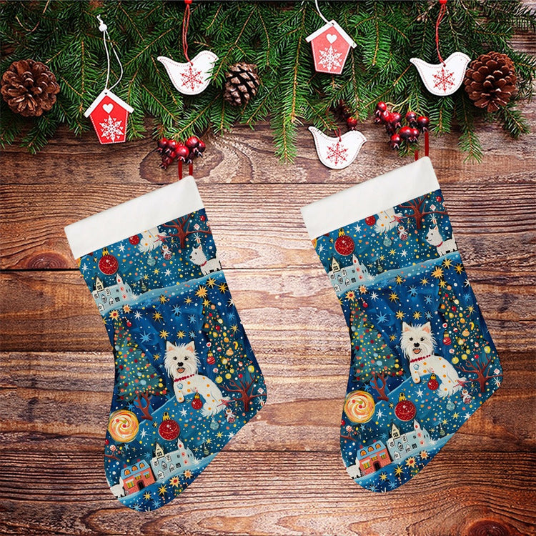 Celebrate the holiday season with the Winter Whimsy Westies Christmas Stocking, a heartwarming tribute to your beloved West Highland Terrier.
