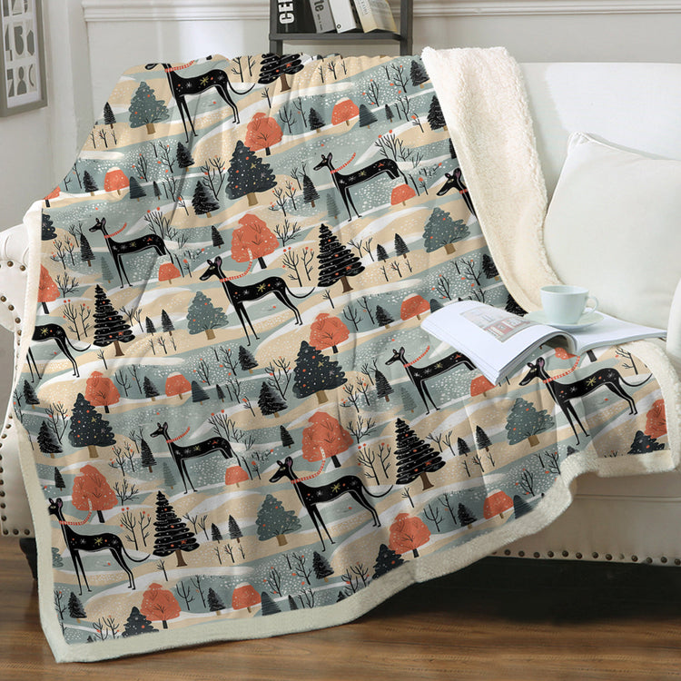 Wintry Wonderland Greyhound / Whippet Soft Warm Christmas Blanket