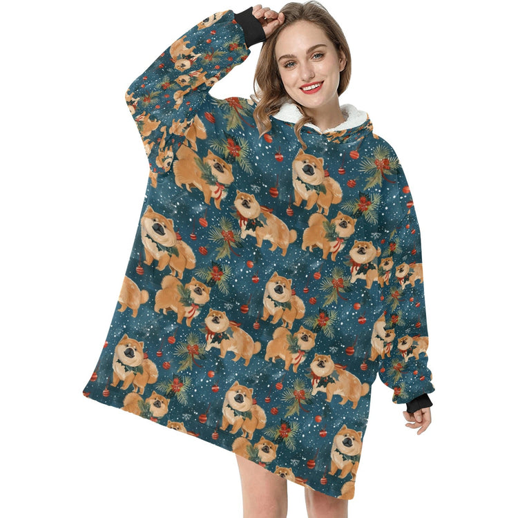 Yuletide Charm Chow Chow Christmas Blanket Hoodie