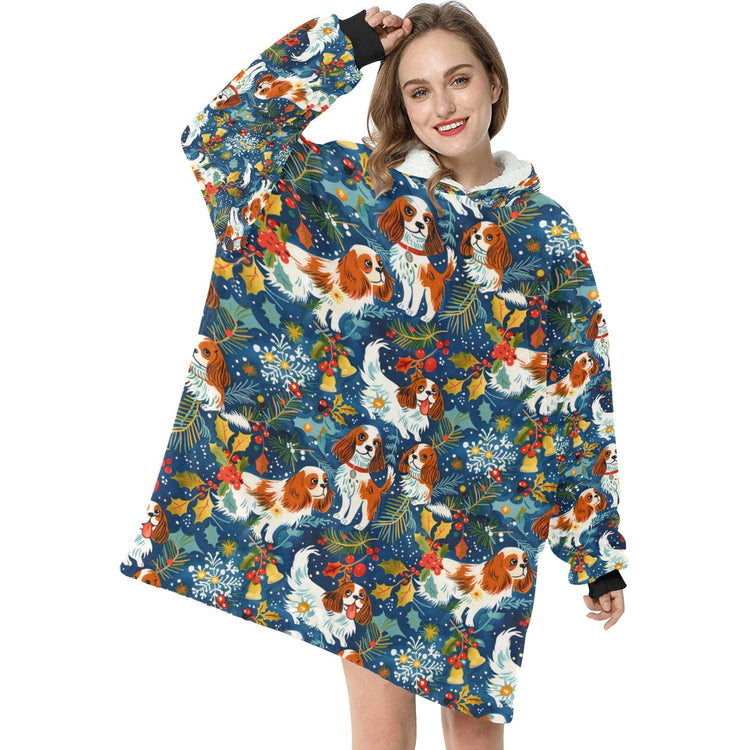 Wrap yourself in festive warmth with the Yuletide Dance Blenheim Cavaliers Christmas Blanket Hoodie!