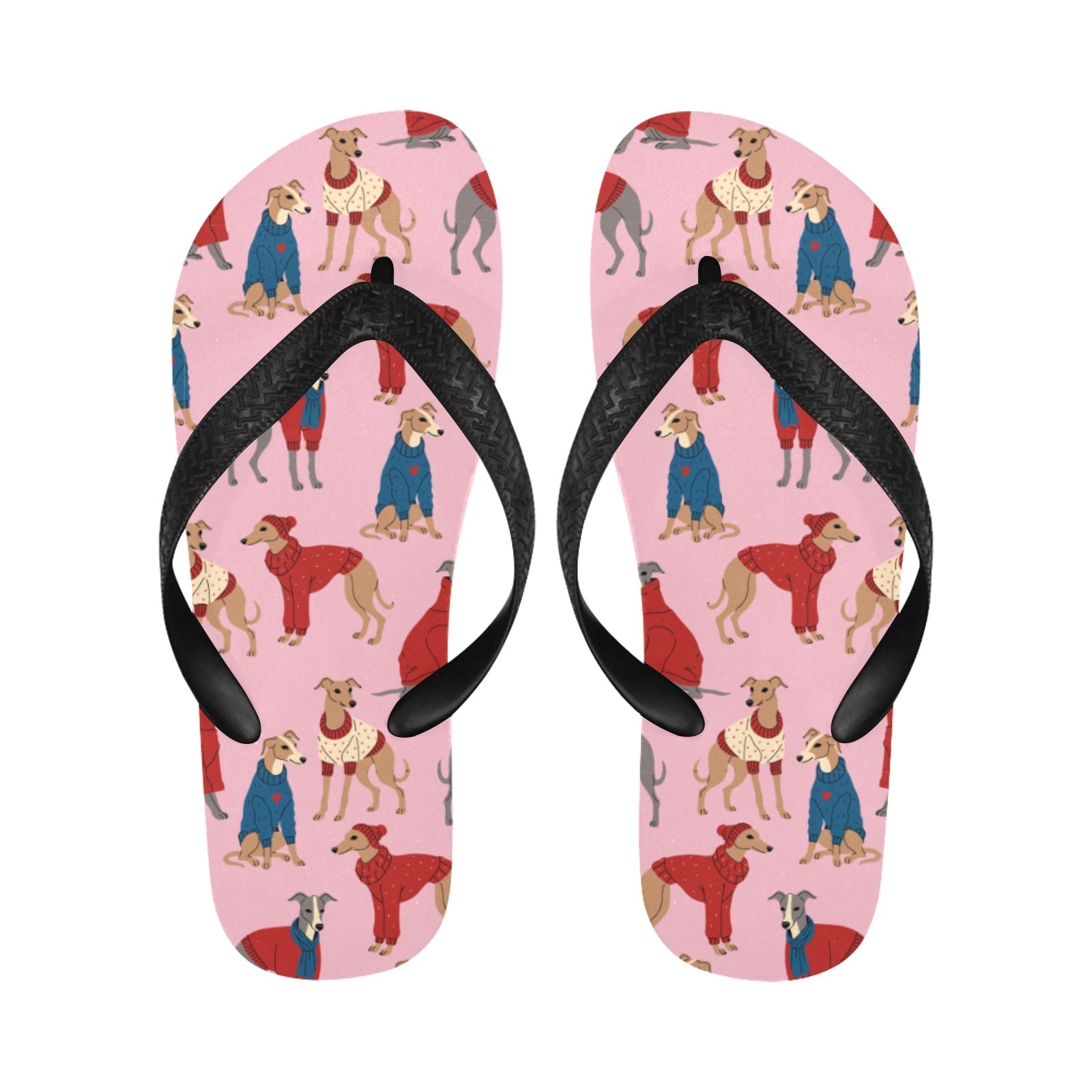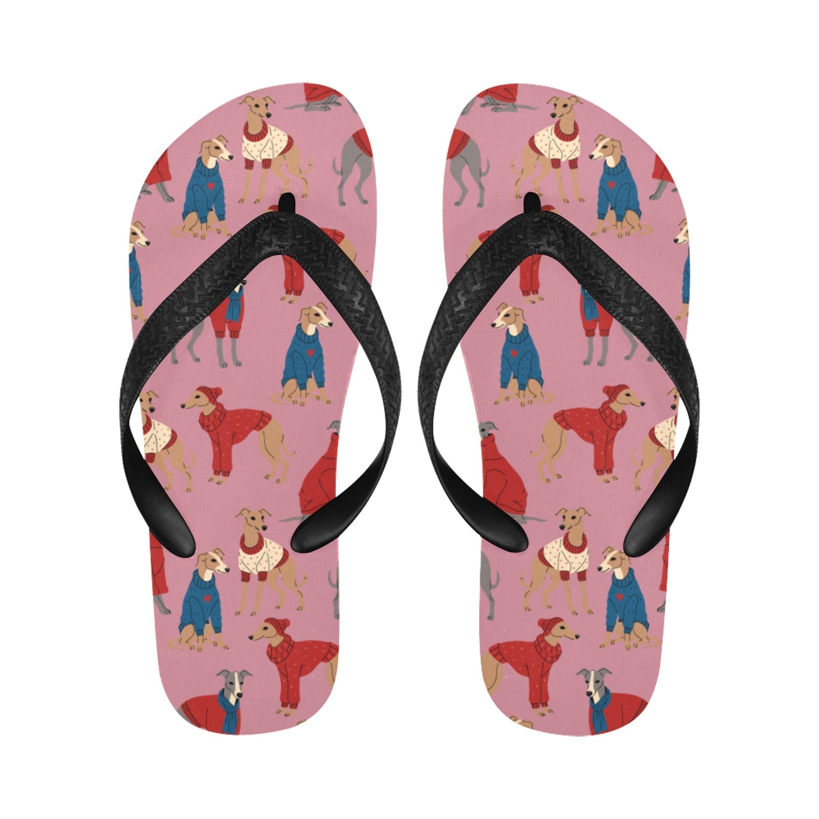 Greyhounds in Festive Winter Wear Unisex Slippers-Pink-S-2