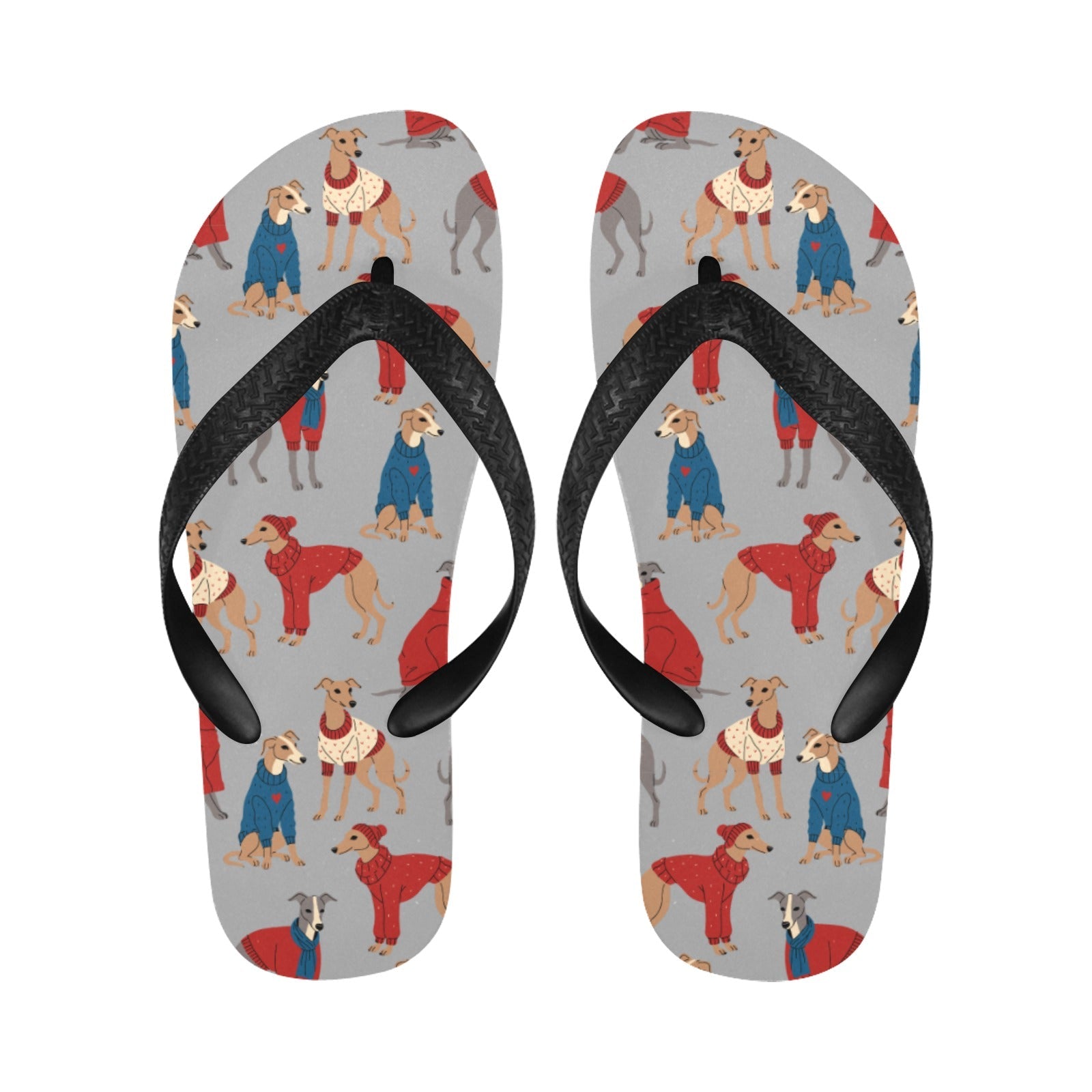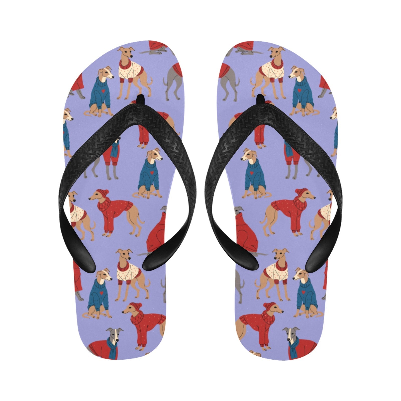 Step into the holiday spirit with our Greyhounds in Festive Winter Wear Unisex Slippers.