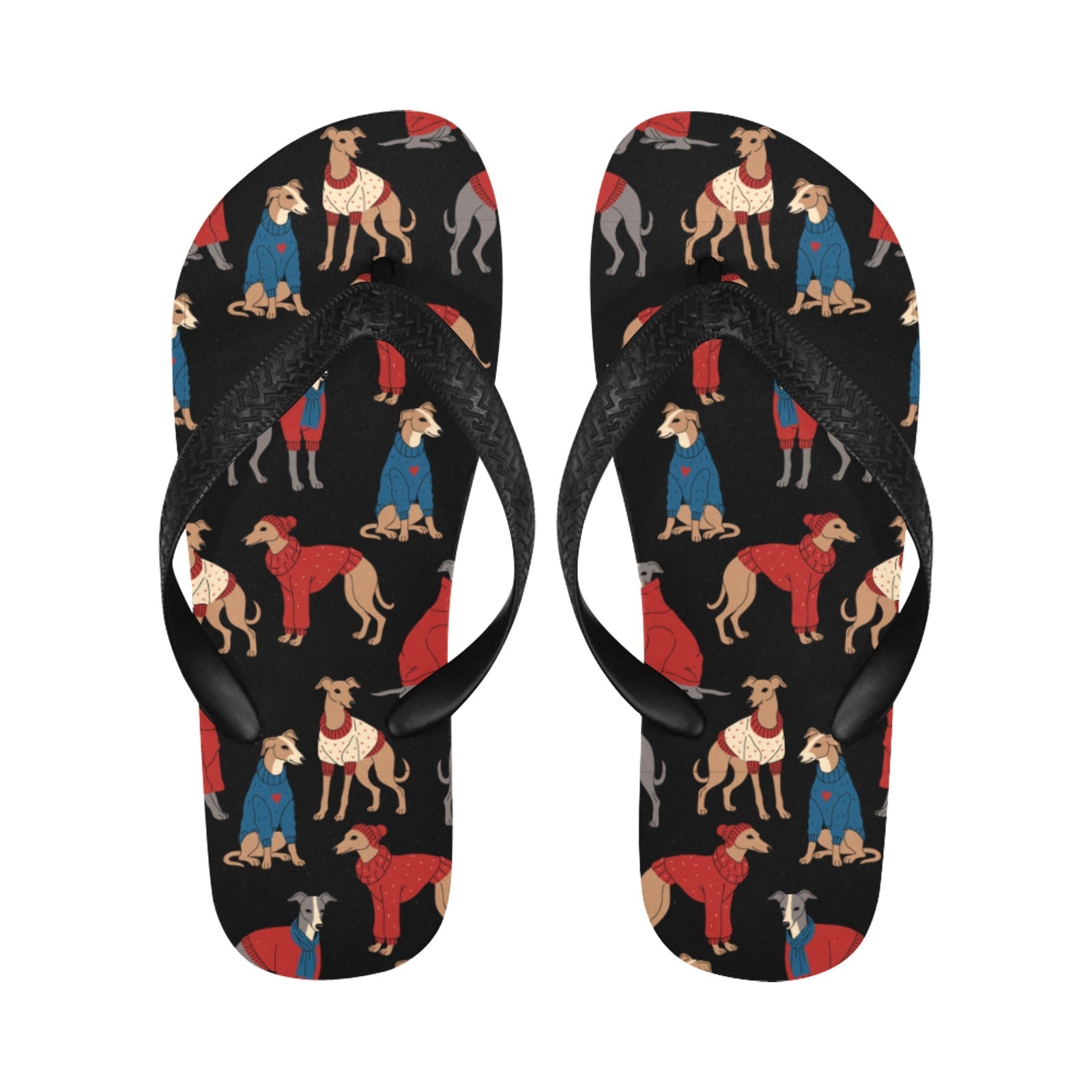 Greyhounds in Festive Winter Wear Unisex Slippers-Black-S-23