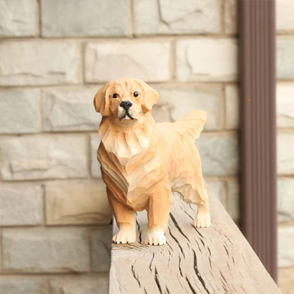 Handmade Wood Carved Golden Retriever Small Statue Figurine-Gold-1