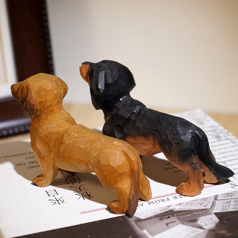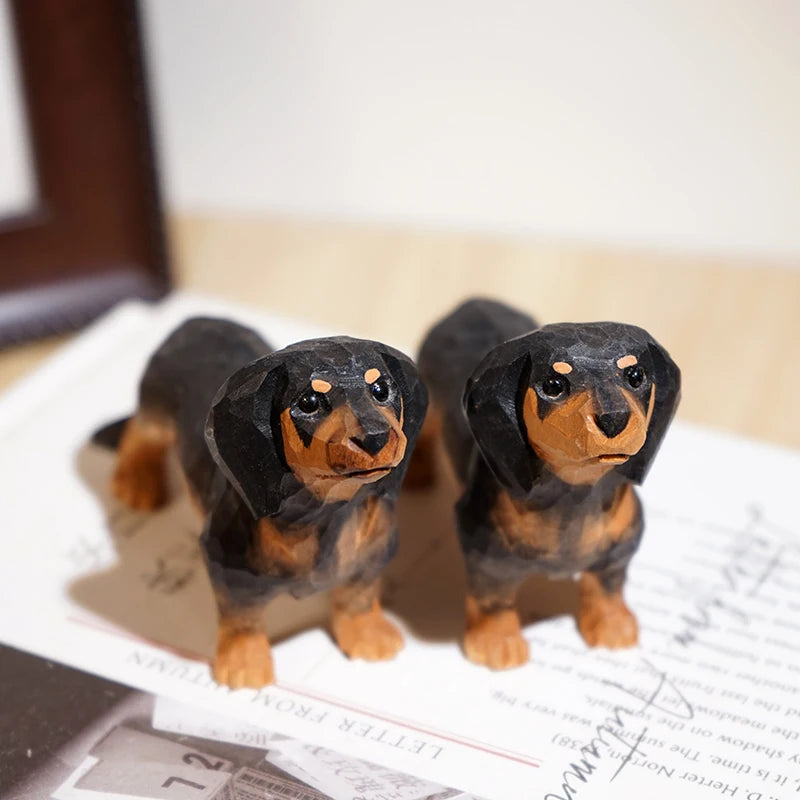 Handmade Wood Carved Smooth Coat Dachshund Small Statue Figurines-2