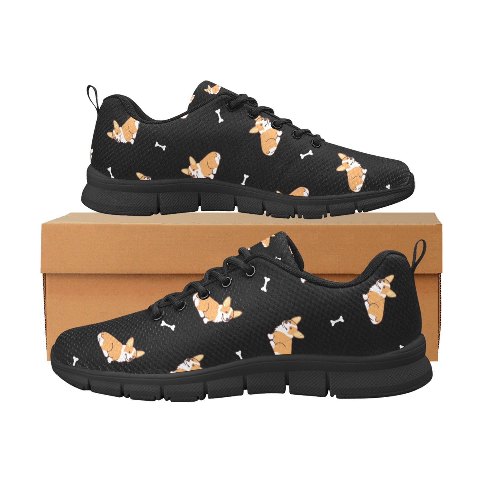 Adorable Corgi Love Women's Breathable Sneakers-Black1-US13-47