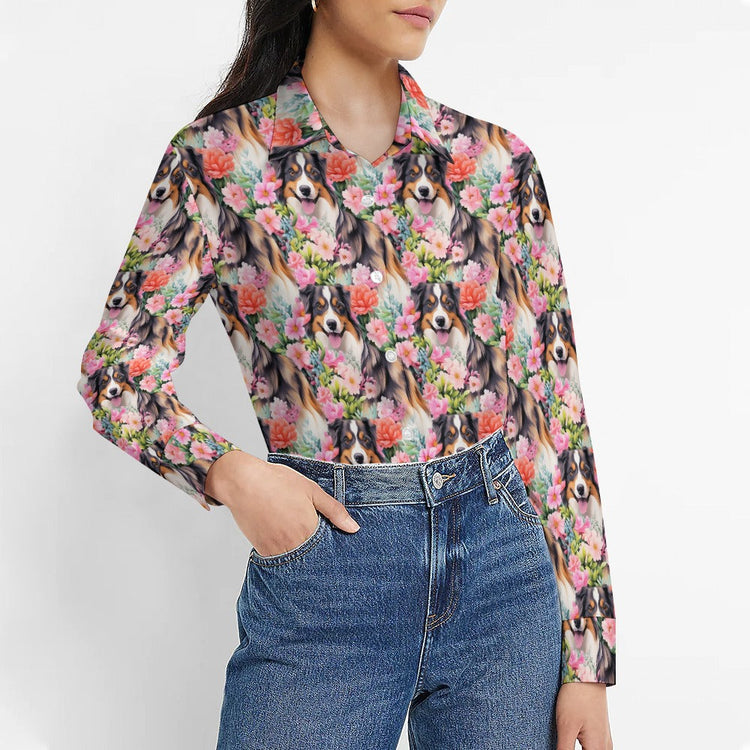 Embrace the vibrancy and spirit of one of the world's most versatile dog breeds with the Australian Shepherd in Bloom Women's Shirt - available in two mesmerizing designs.