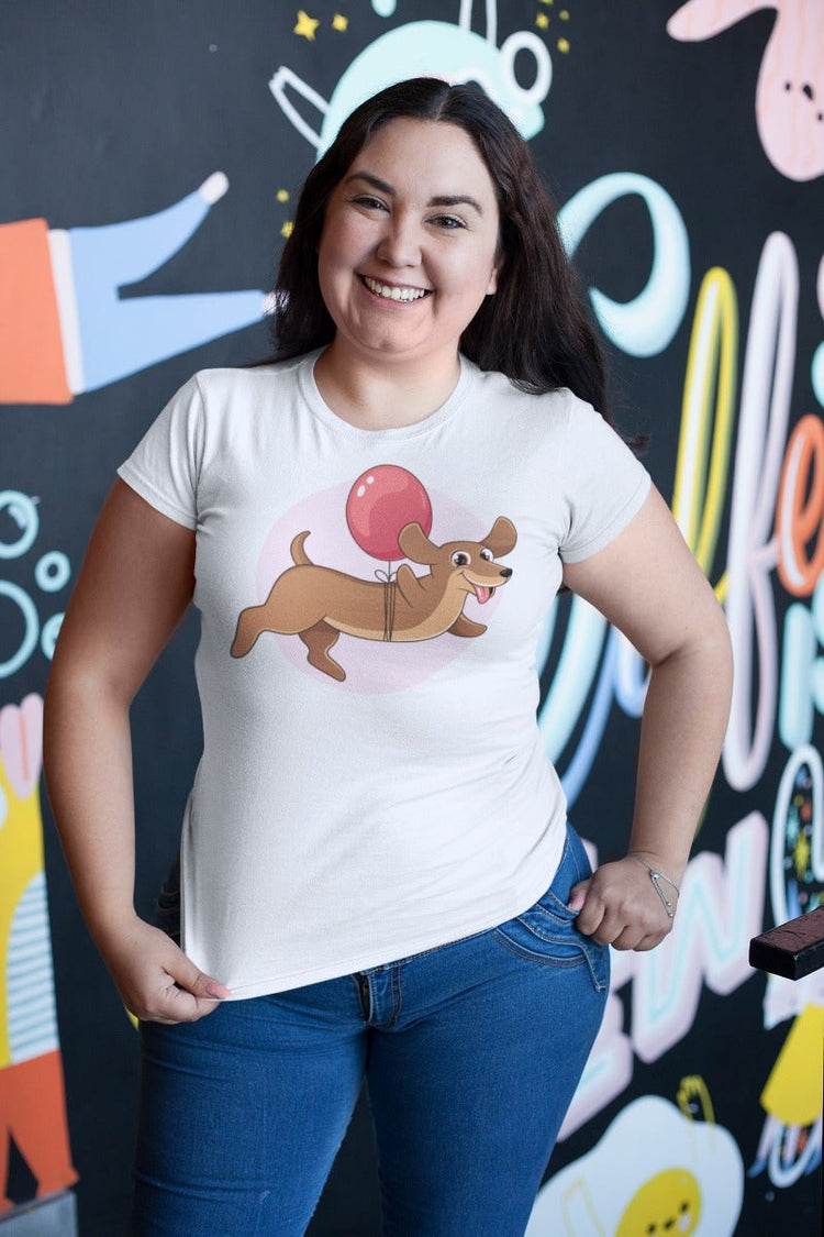Indulge in the whimsical world of Dachshunds with our "Balloon Dachshund Love" Women's Cotton T-Shirts!