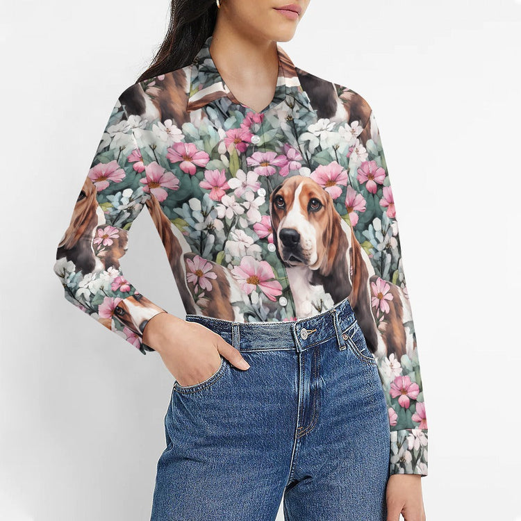 Beagle in a Blossoming Garden of Pink and Green Women's Shirt - 2 Designs