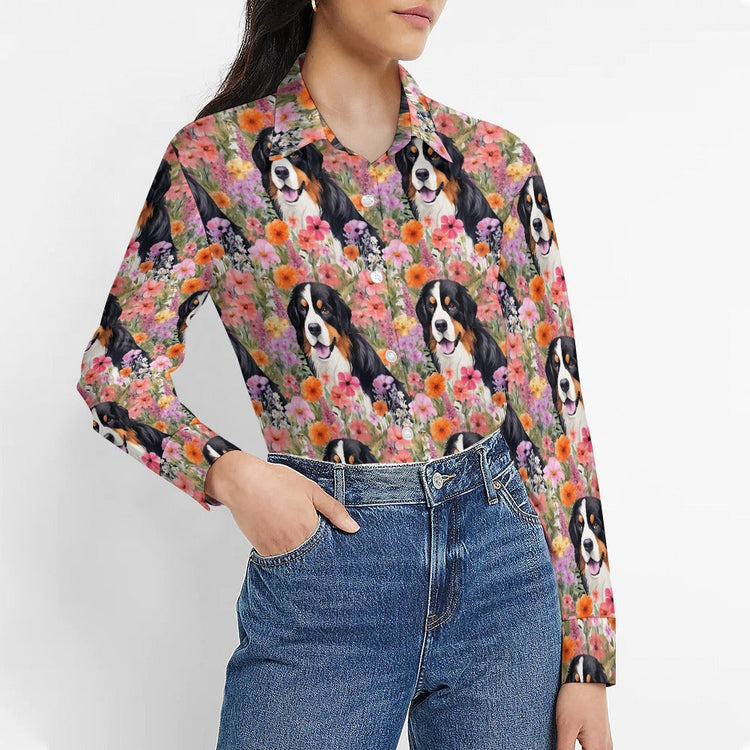 Embrace the beauty of nature and the undeniable charm of the Bernese Mountain Dog with our Bernese Mountain Dog in Bloom Women's Shirt.