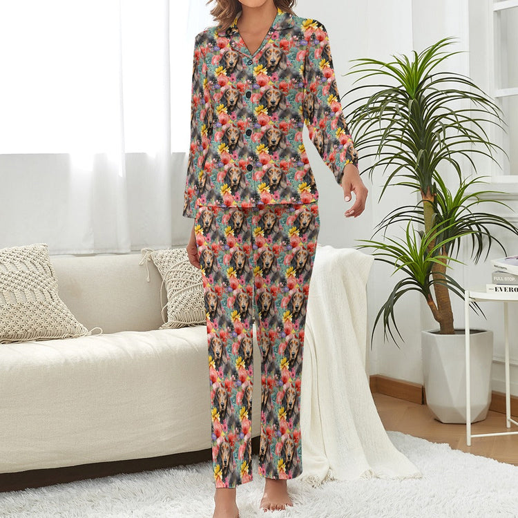 Botanical Beauty Chocolate and Tan Dachshunds Pajama Set for Women