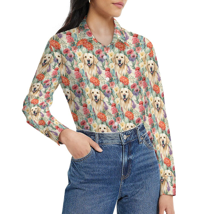 Embrace the essence of canine joy and floral charm with the Botanical Beauty Golden Retriever Women's Shirt.