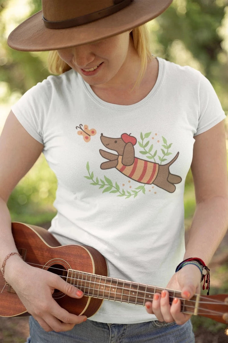 Made from a soft and breathable cotton, this Dachshund T-shirt is perfect for everything from lounging around the house to running errands. Whether you're out walking your Dachshund or simply enjoying a casual day out, this Dachshund T-shirt is sure to bring a smile to your face.