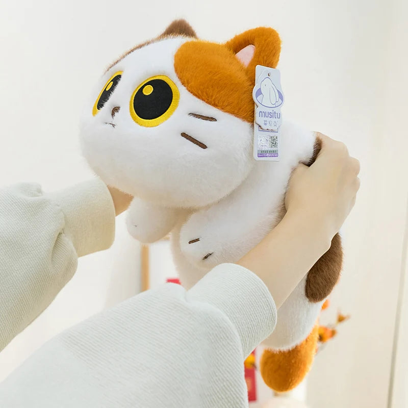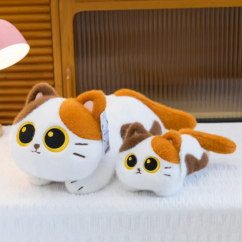 Meet the Calico Cat Plush Toy in a big-eye, belly-flop chibi pose that’s impossible not to hug.