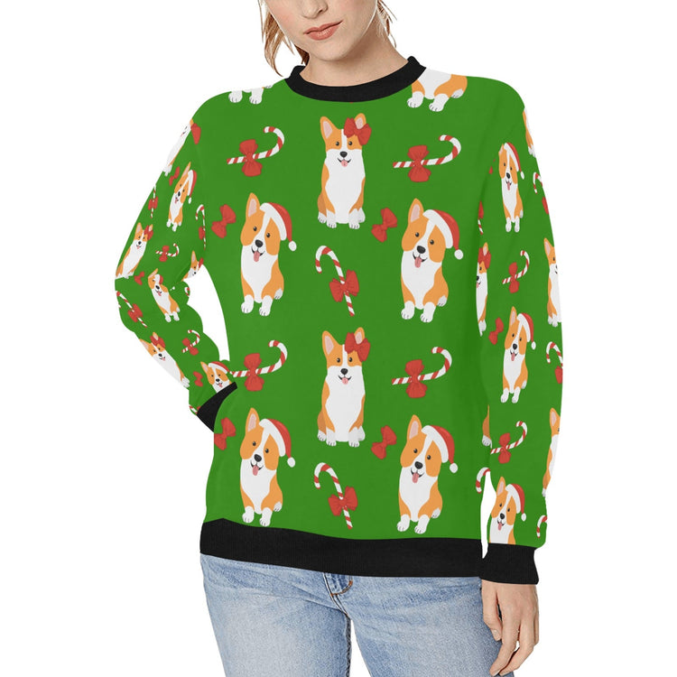 Candy Cane Christmas Corgis Women's Sweatshirt-Green-XS-13
