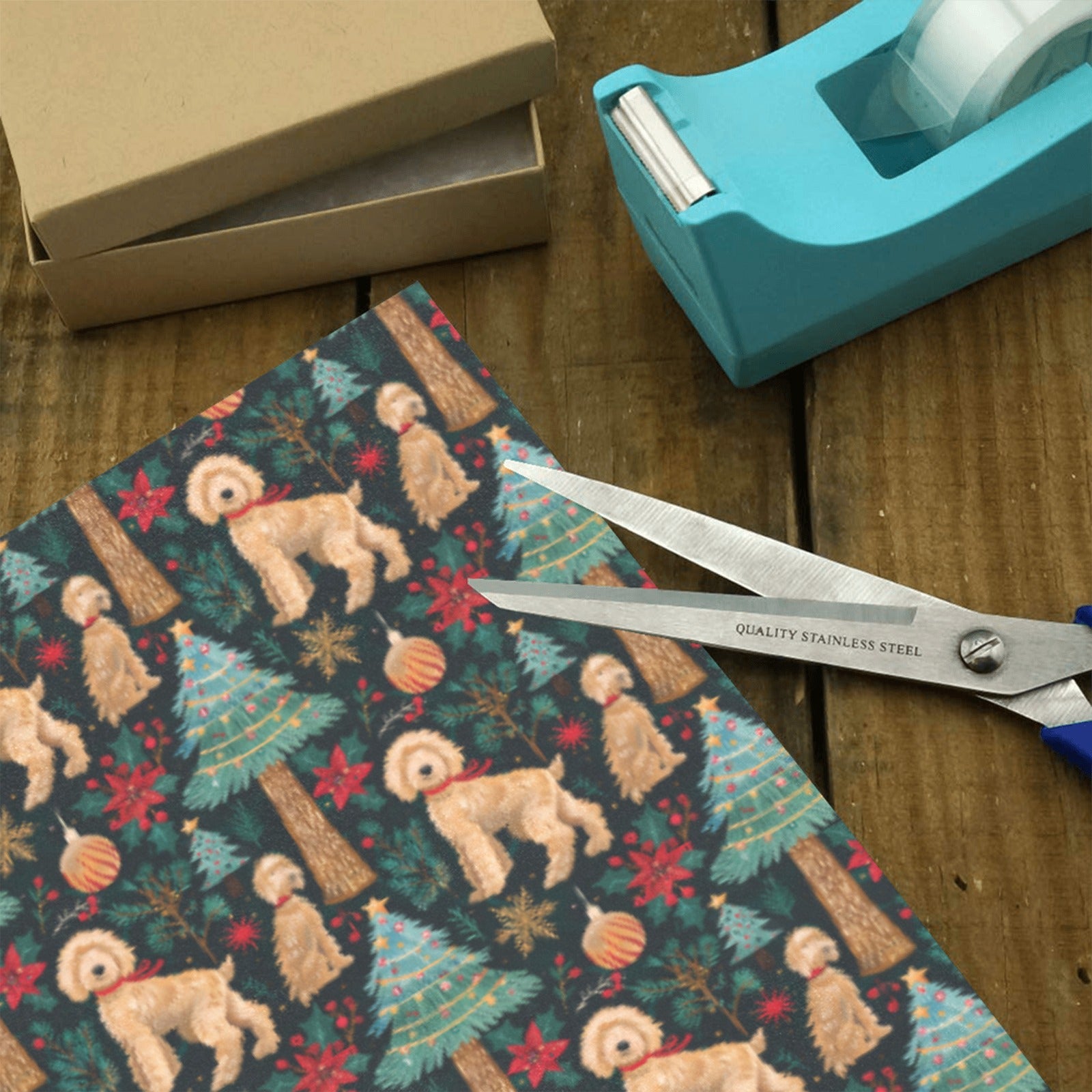Wrap your gifts in joy this holiday season with our Christmas Frolic Goldendoodles Gift Wrapping Paper!