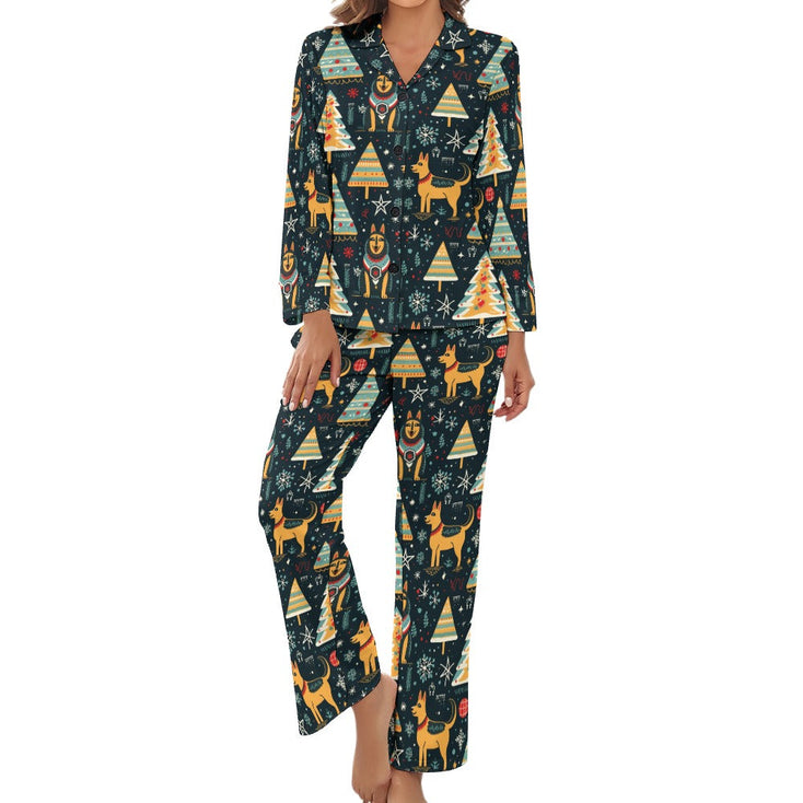 Christmas Groove Guardian German Shepherds Pajamas Set for Women