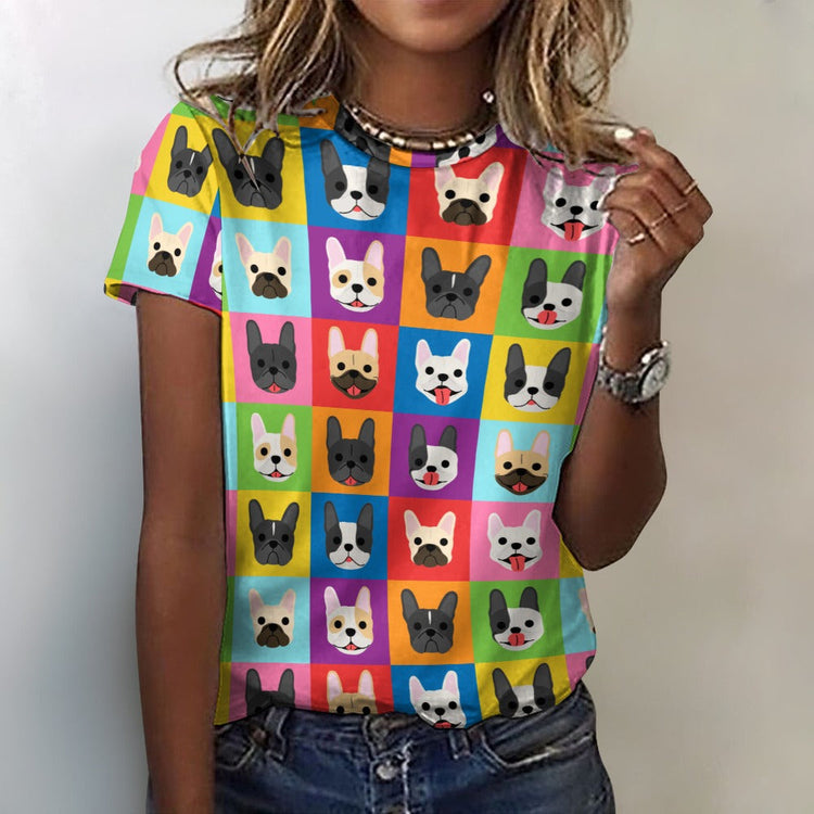 Colorful Mosaic Frenchies Love All Over Print Women's Cotton T-Shirt - 4 Colors