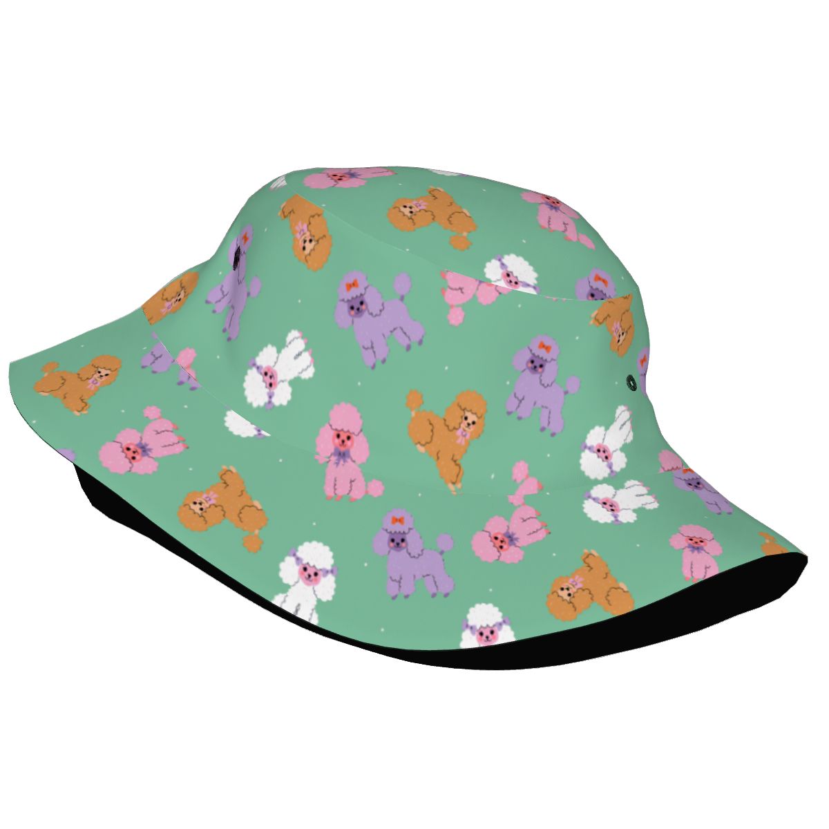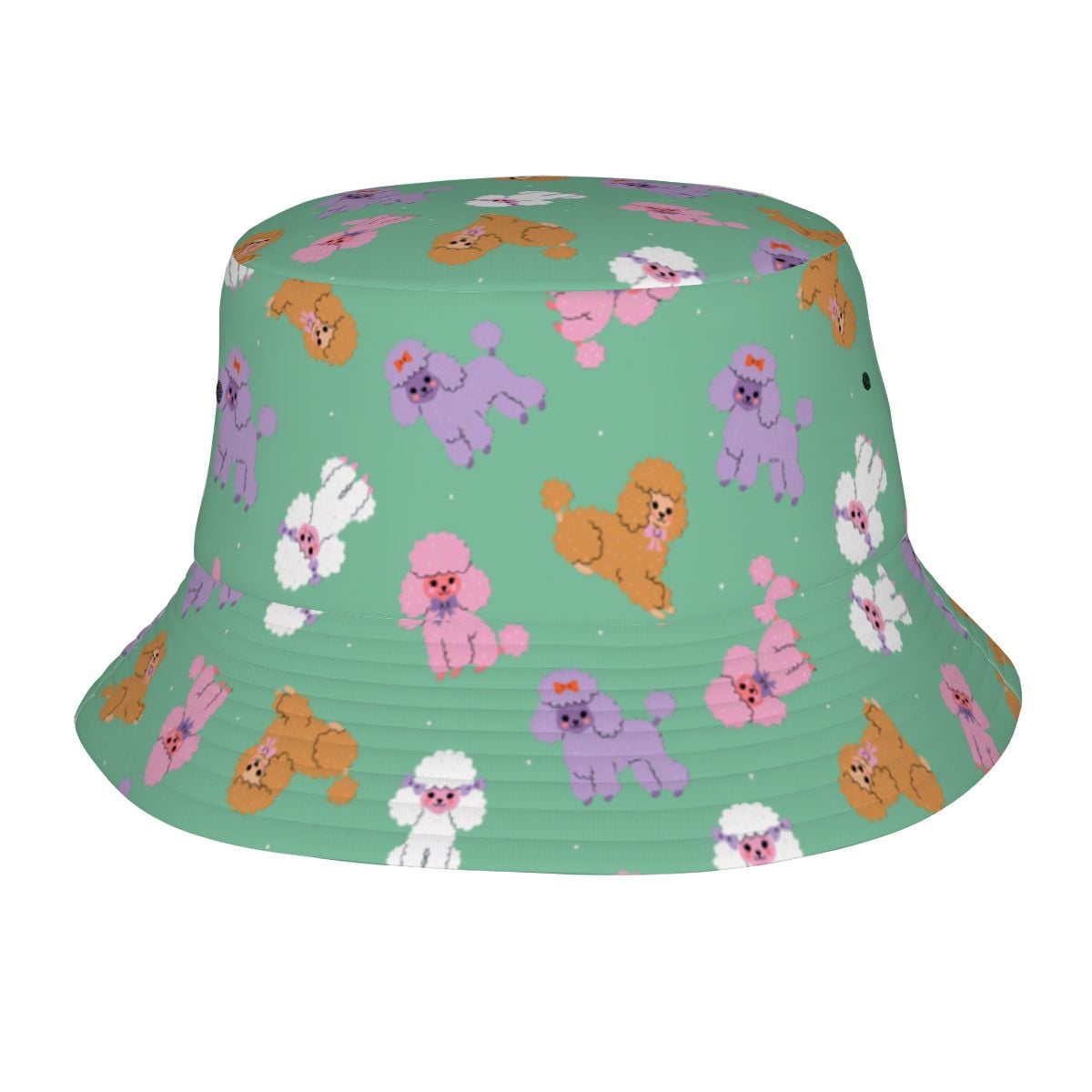 Colorful Poodles in Playful Poses Bucket Hat-Hats & Caps-Green-One Size-33