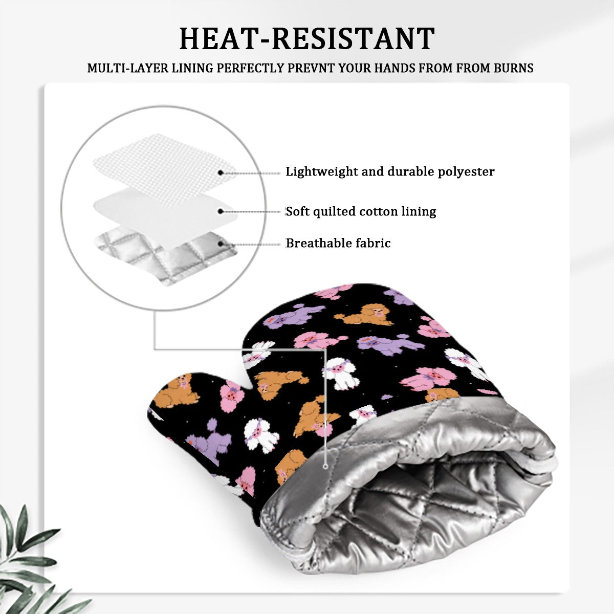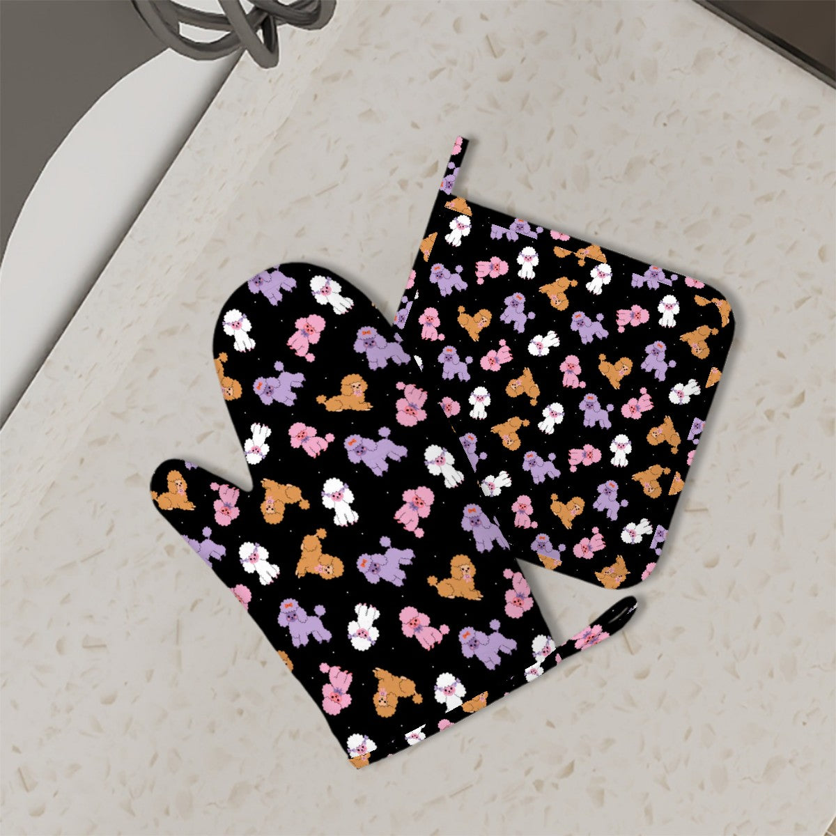 Bring bright Poodle joy to every bake with Colorful Poodles Love Oven Gloves.
