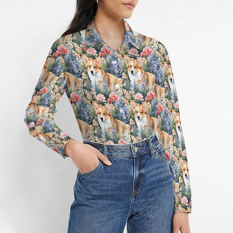 Corgi's Floral Paradise Women's Shirt - 3 Designs