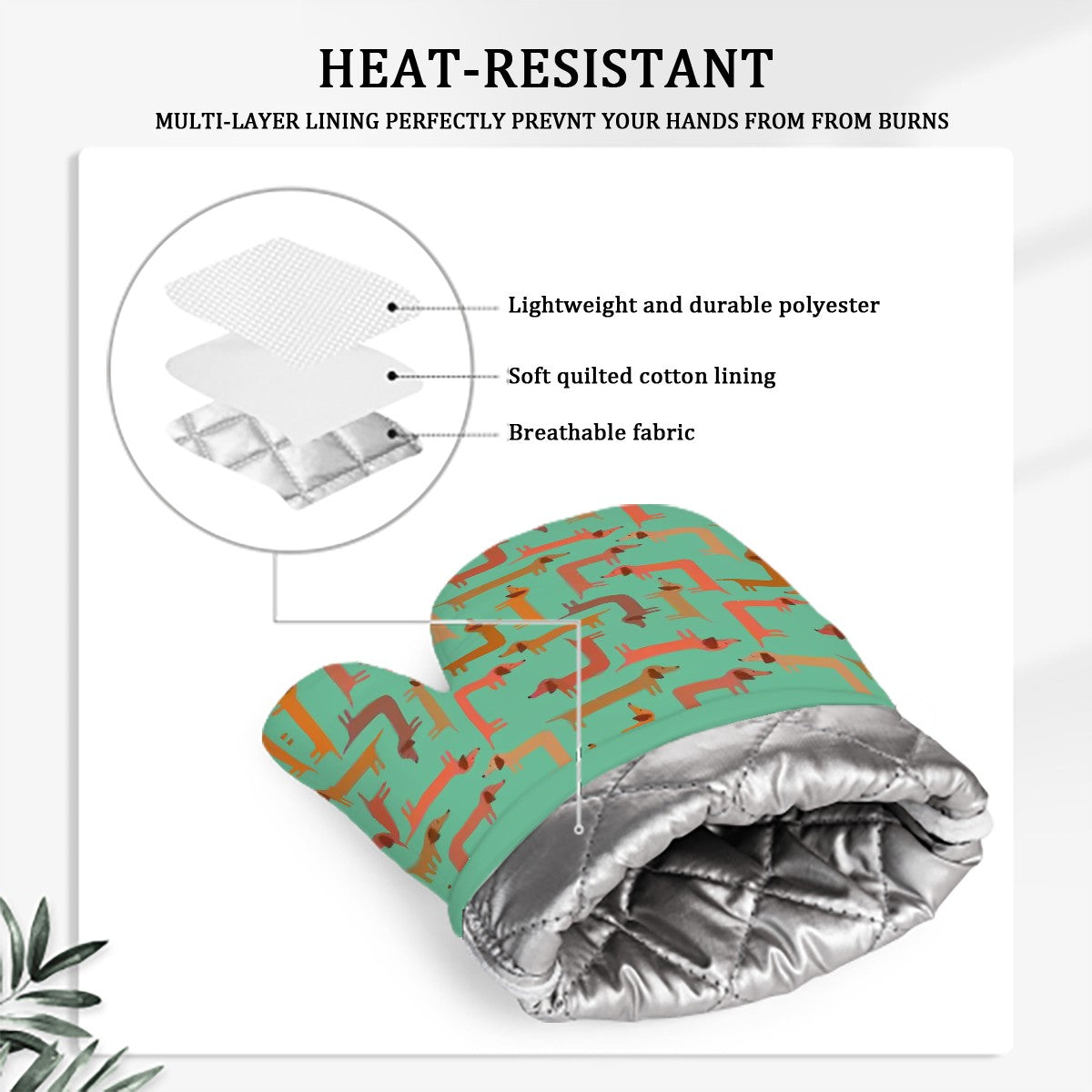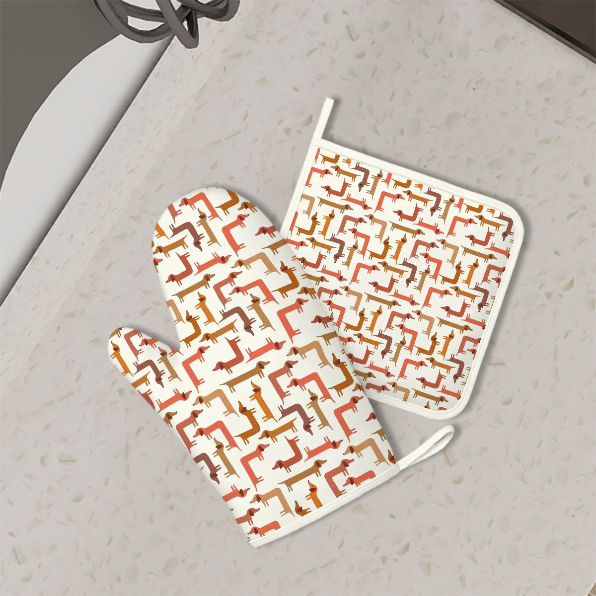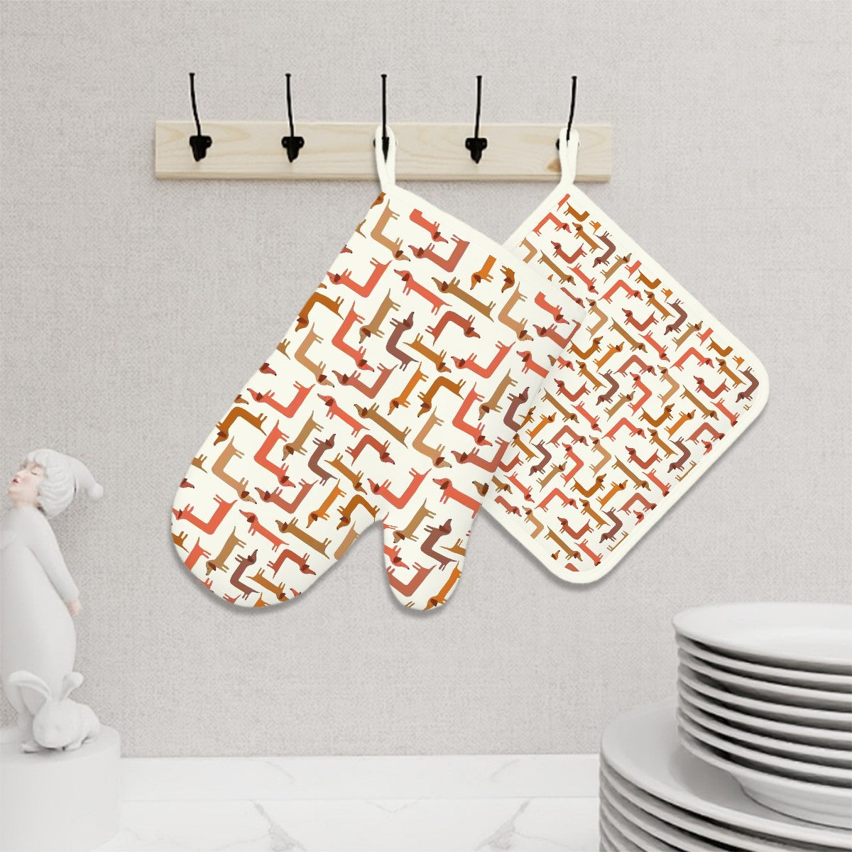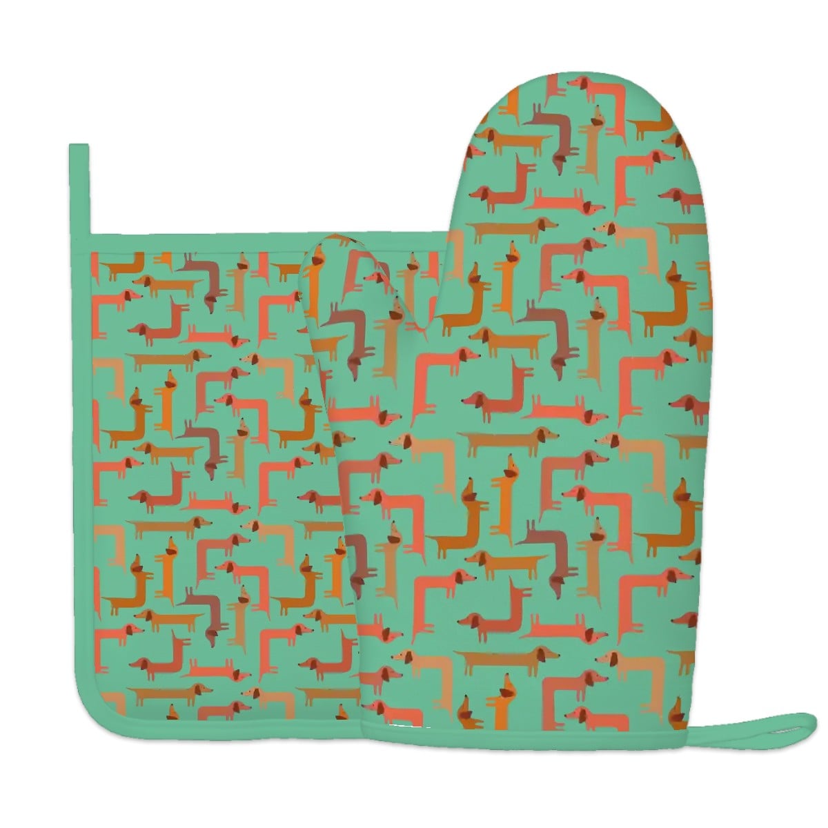 Curvy Dachshund Love Oven Mitts and Pot Holder Set