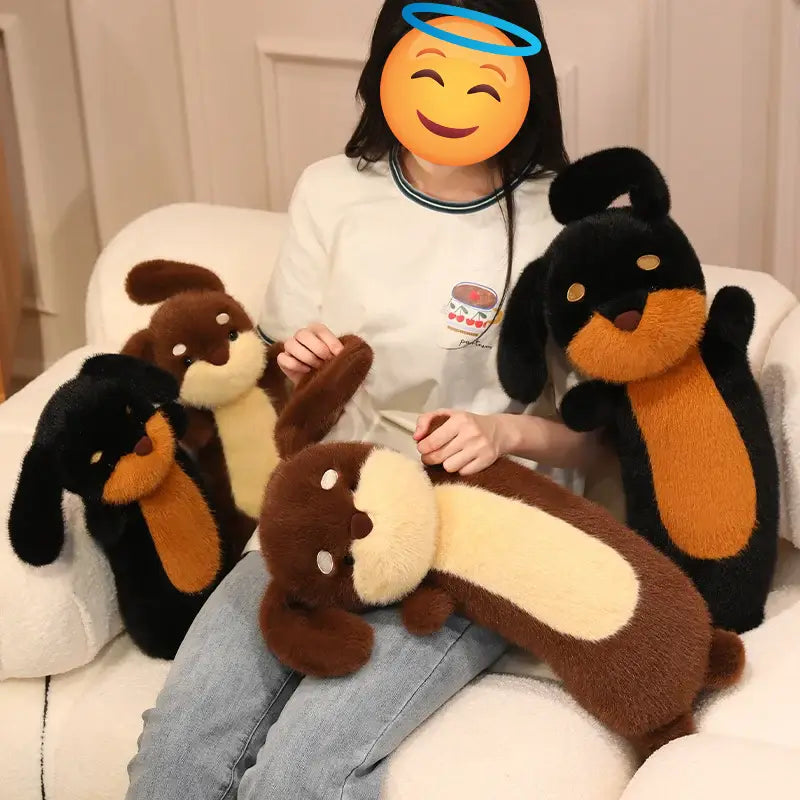 This long, cylindrical plush toy captures the essence of your favorite Dachshund, featuring a warm brown body with delightful tan markings.