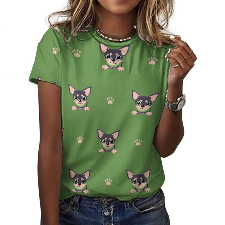 Cutest Black and Tan Chihuahua Love All Over Print Women's Cotton T-Shirt - 4 Colors