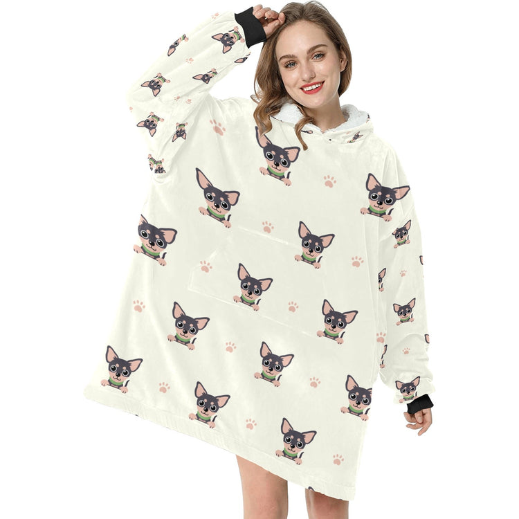 Cutest Black and Tan Chihuahua Love Blanket Hoodie for Women - 4 Colors