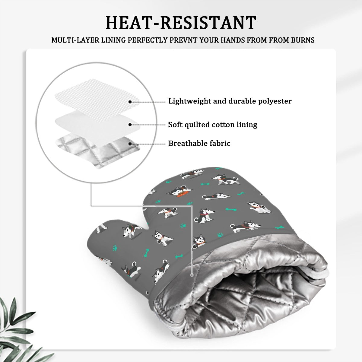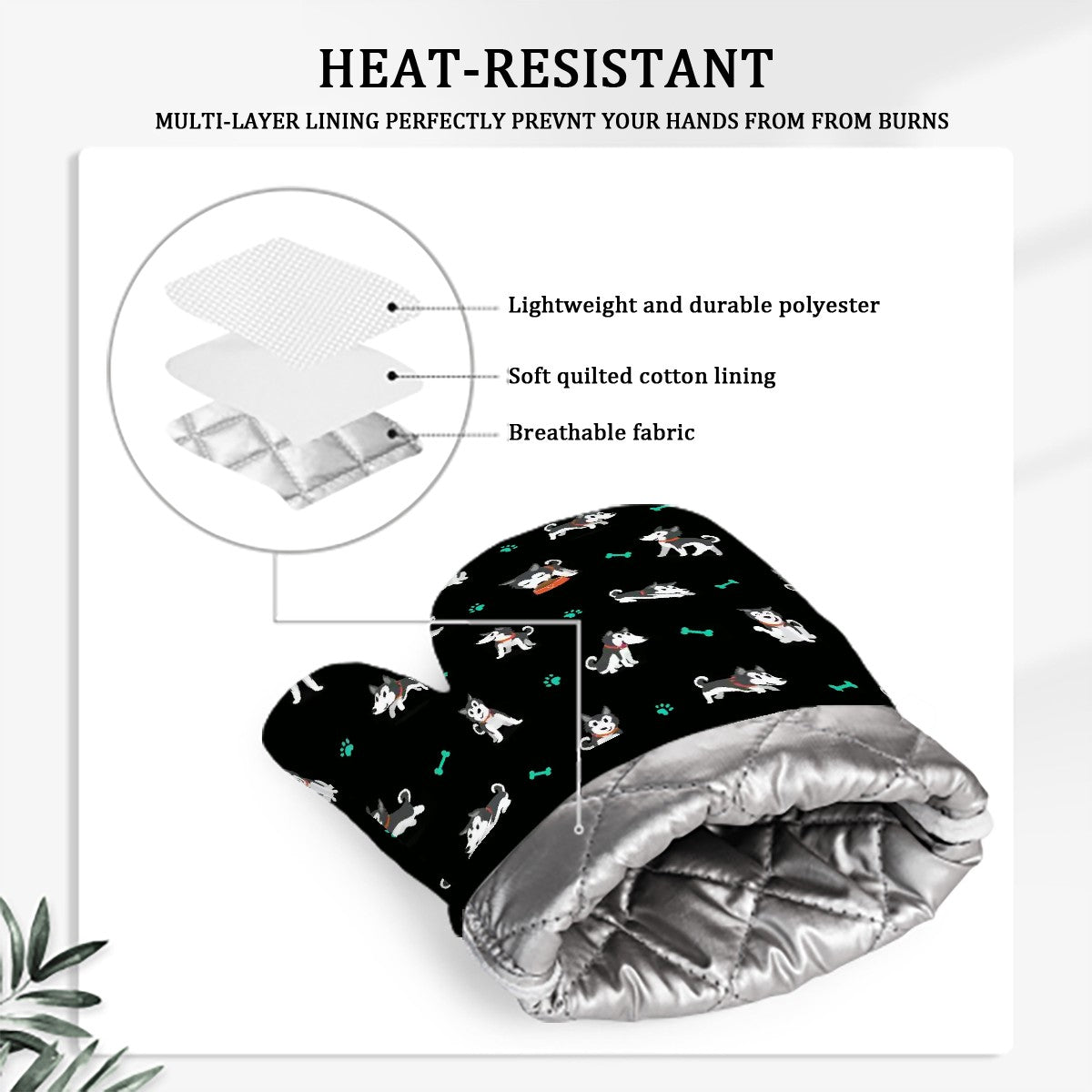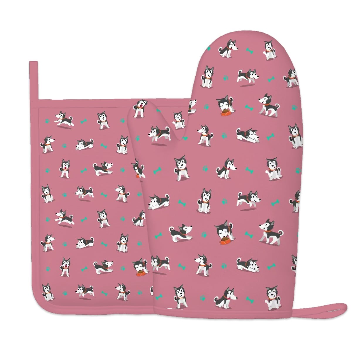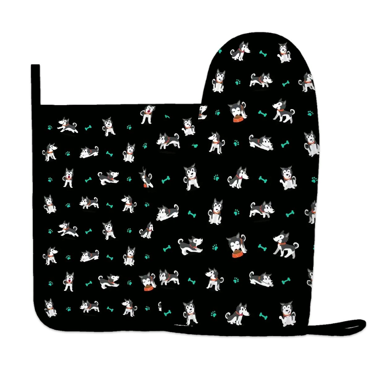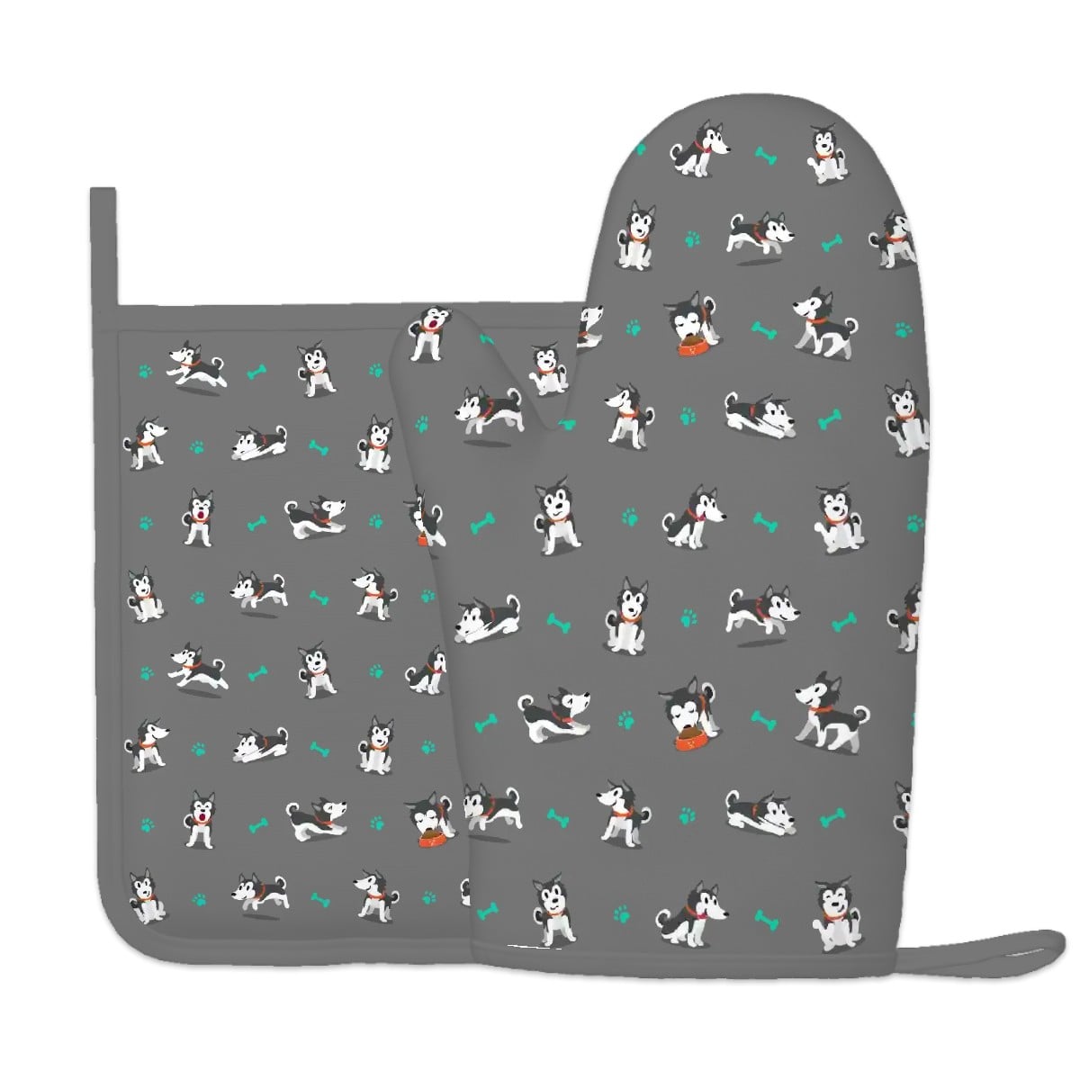 Cutest Black and White Husky Oven Mitts and Pot Holder Set