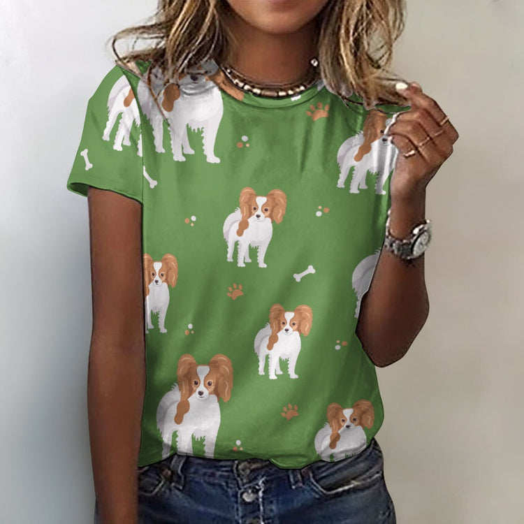 Showcase your affection for the delicate and graceful Papillon with our Cutest Papillon Love Soft All Over Print Women's Cotton T-Shirt.