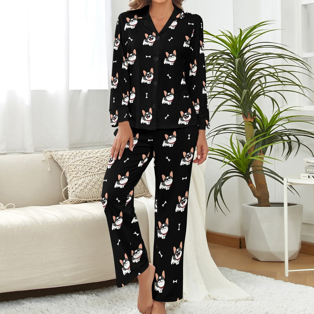 Cutest Pied Black and White Frenchies Pajamas Set for Women