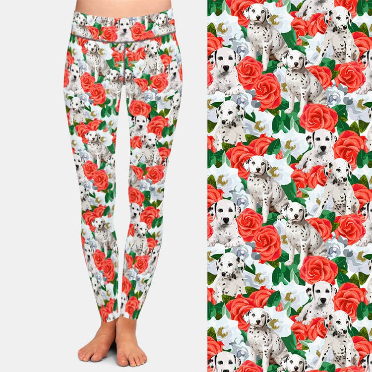 Featuring the cutest infinite black-and-white Dalmatians with red roses print design. You can wear these most adorable and pretty as picture leggings for Dalmatian moms for everything from exercising to a night out!