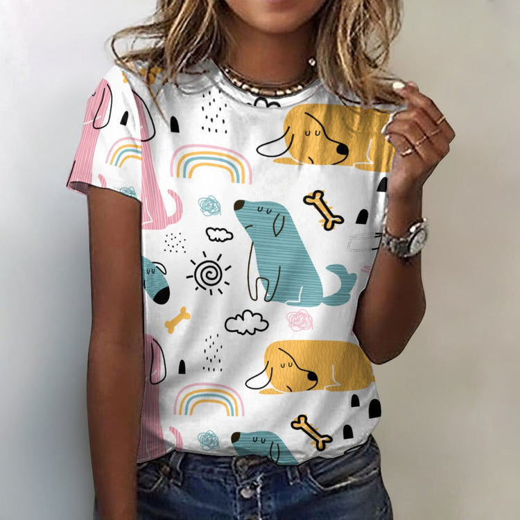 Doodle Cartoon Labrador Love All Over Print Women's Cotton T-Shirt - 4 Colors