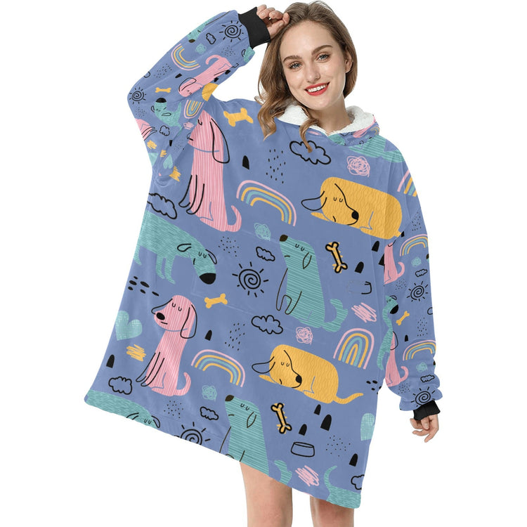 Doodle Cartoon Labrador Love Blanket Hoodie for Women - 4 Colors