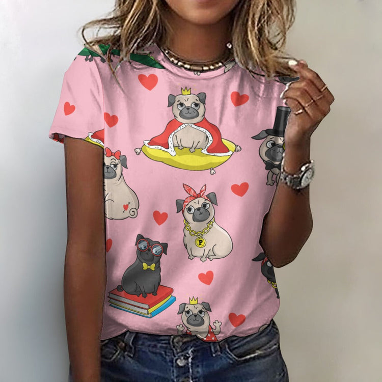 Fancy Dress Pugs All Over Print Women's Cotton T-Shirt - 4 Colors