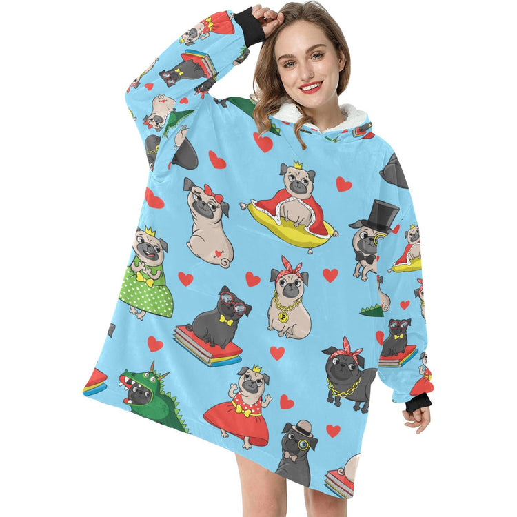 Fancy Dress Pugs Love Blanket Hoodie for Women - 4 Colors