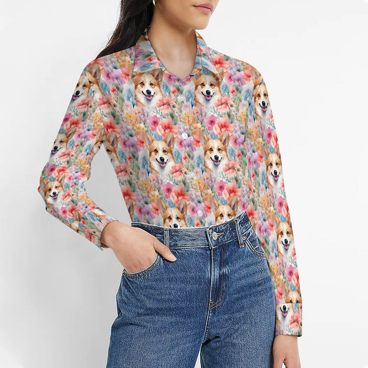 Wrap yourself in the colors of nature and the charm of your favorite canine with our Floral Fantasy Corgis Women's Shirt.