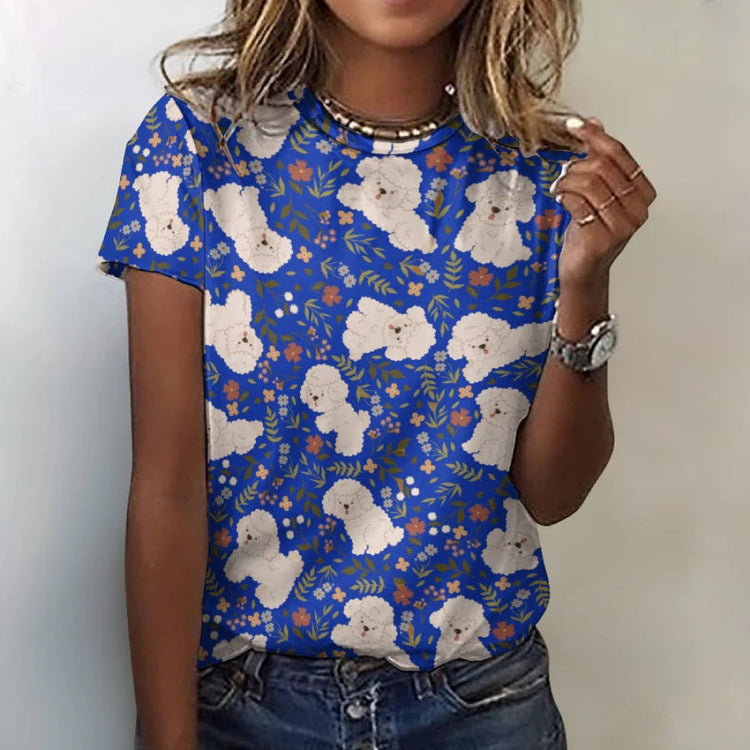 Flower Garden Bichon Frise All Over Print Women's Cotton T-Shirt