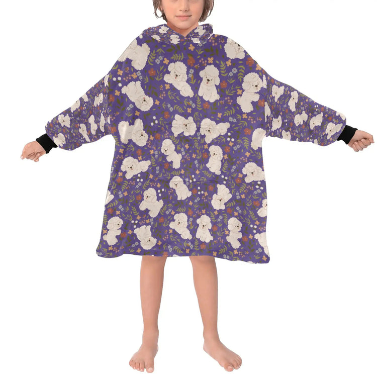 Flower Garden Bichon Frise Blanket Hoodie for Kids - 3 Colors