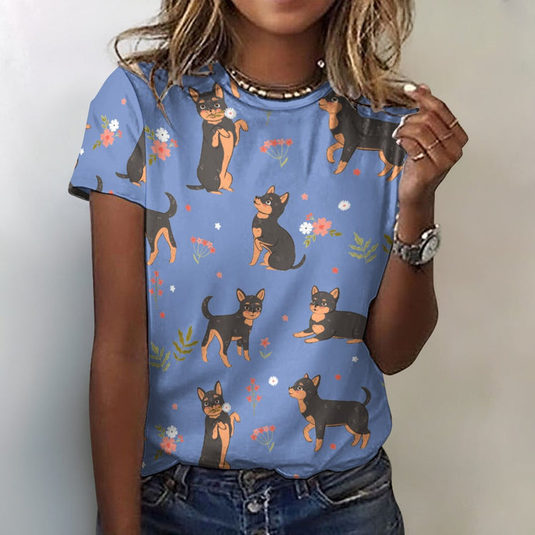 Flower Garden Black and Tan Chihuahua All Over Print Women's Cotton T-Shirt - 4 Colors