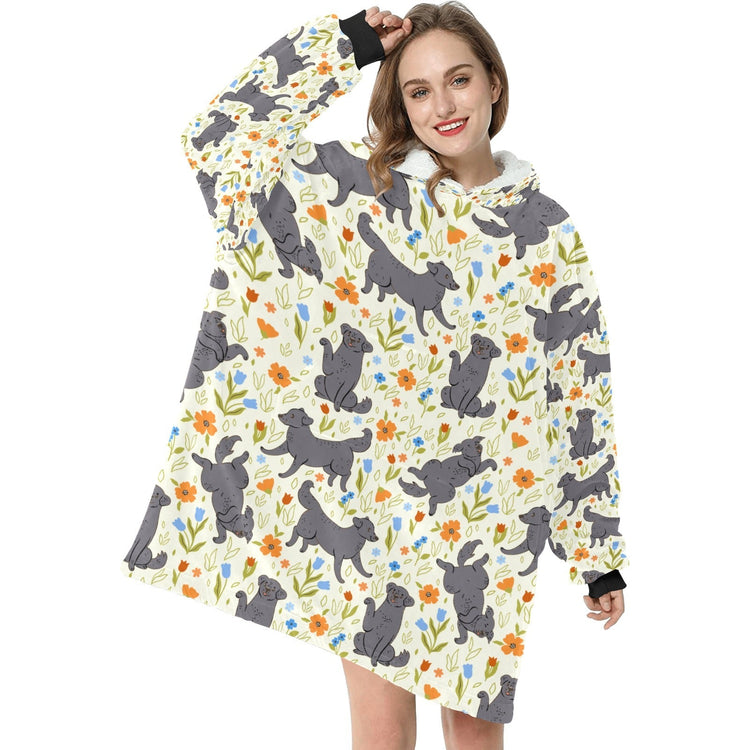 Flower Garden Black Labradors Blanket Hoodie for Women - 5 Colors