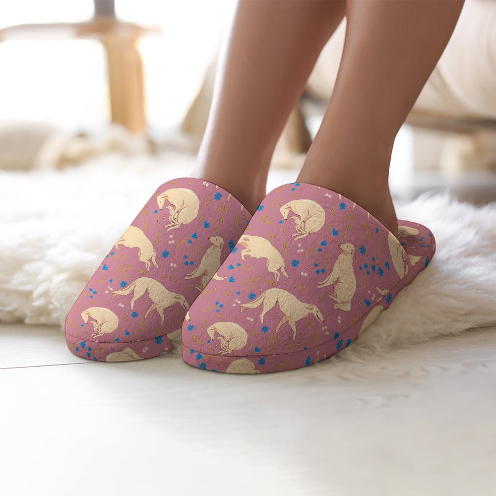 Flower Garden Borzoi Women's Cotton Mop Slippers-45