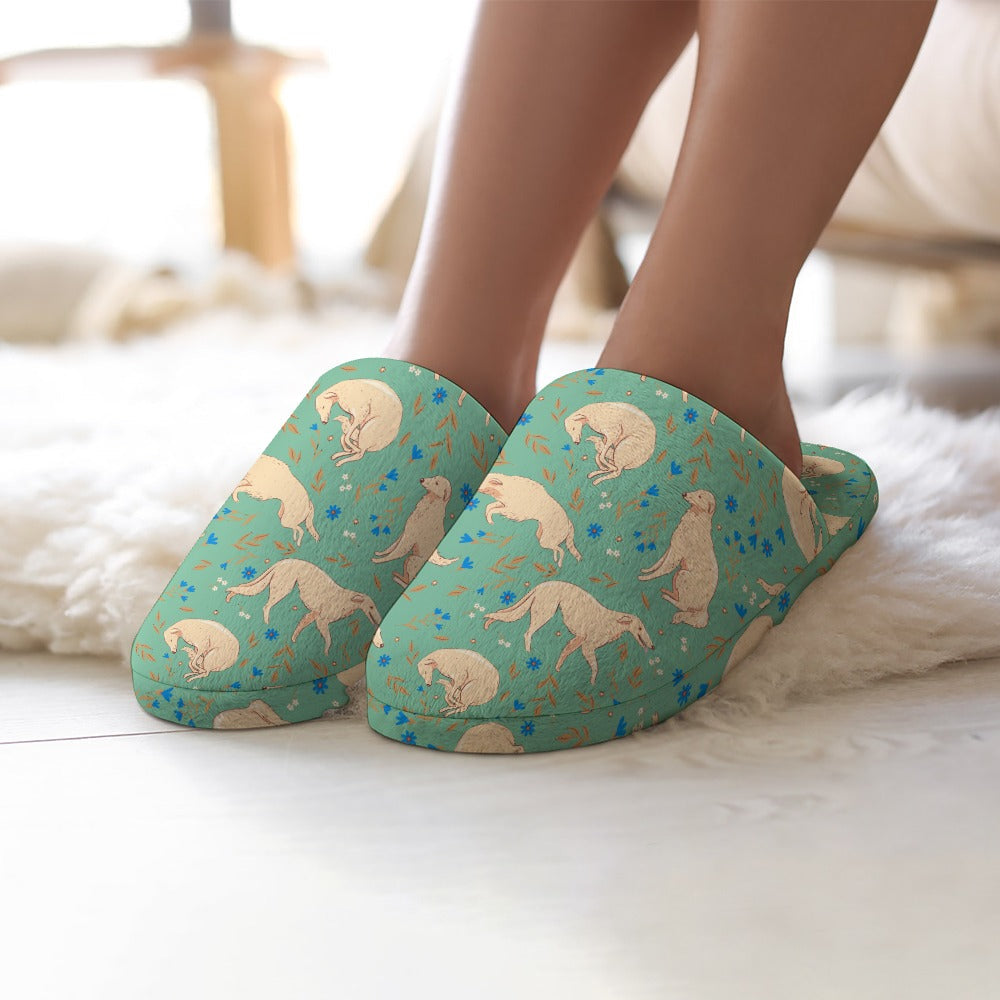 Flower Garden Borzoi Women's Cotton Mop Slippers-32