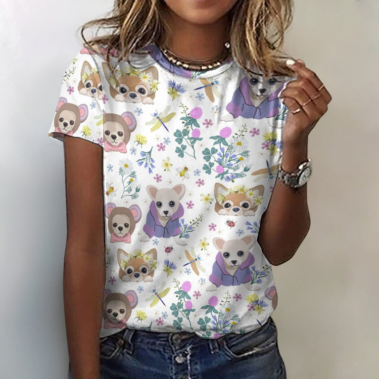 Magic Flower Garden Chihuahuas All Over Print Women's Cotton T-Shirt - 4 Colors