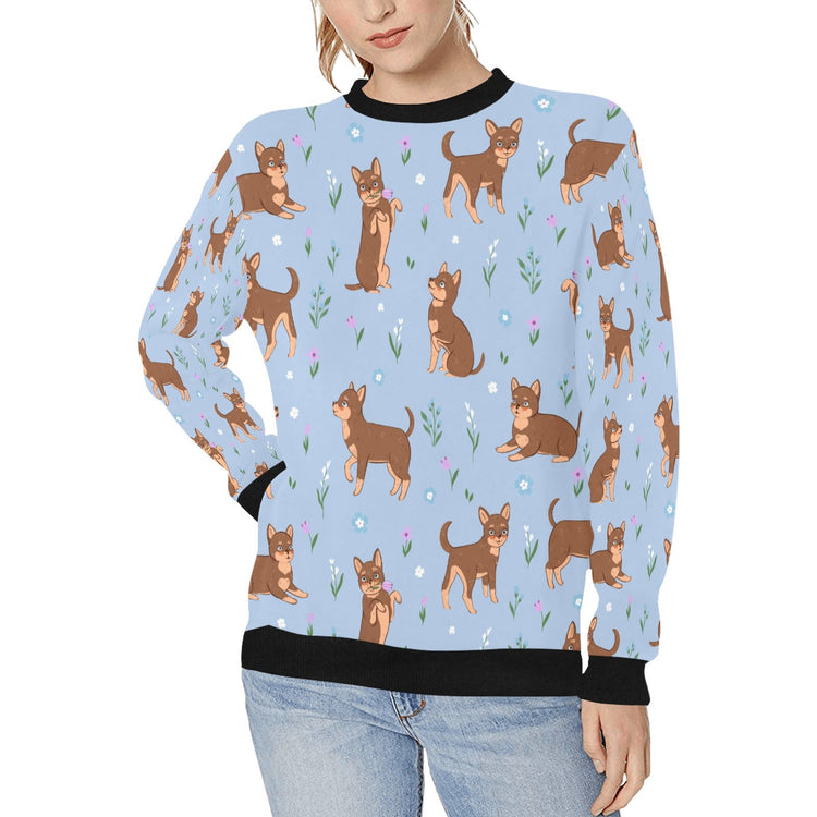 Flower Garden Chocolate Chihuahua Women's Sweatshirt - 4 Colors