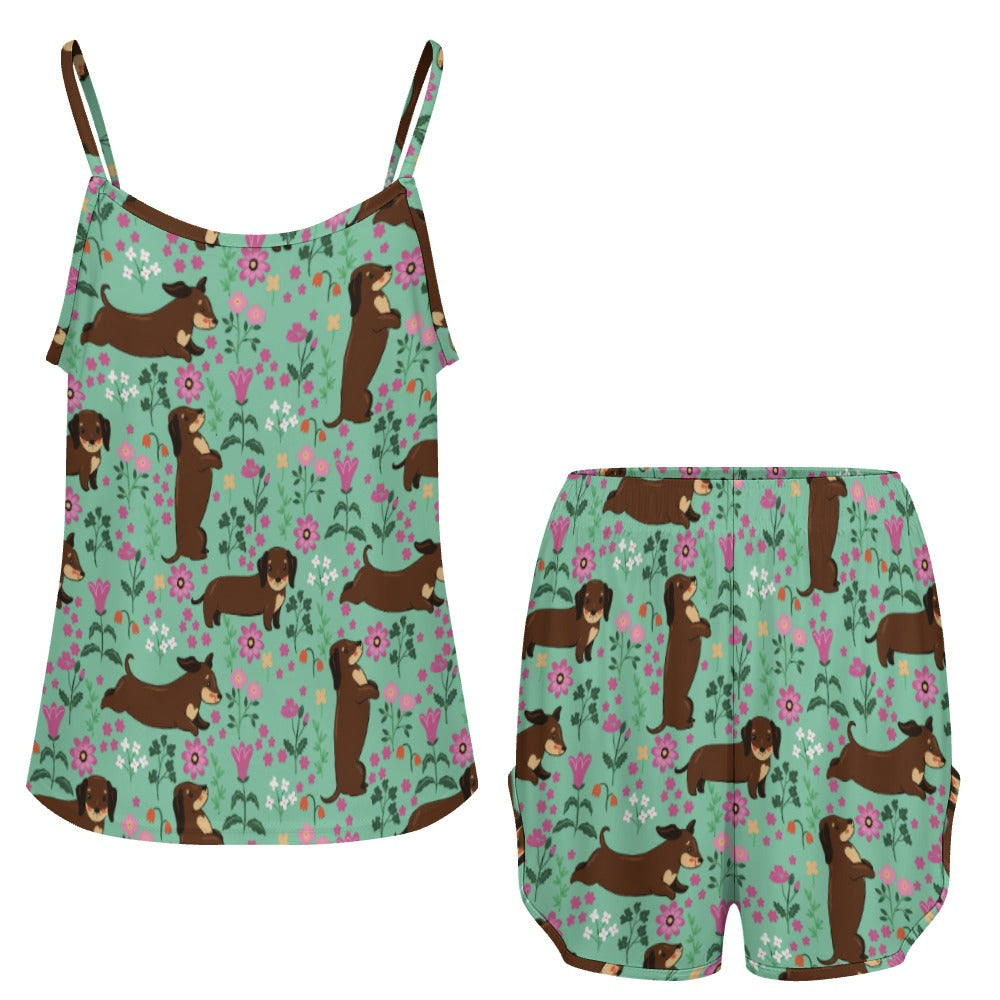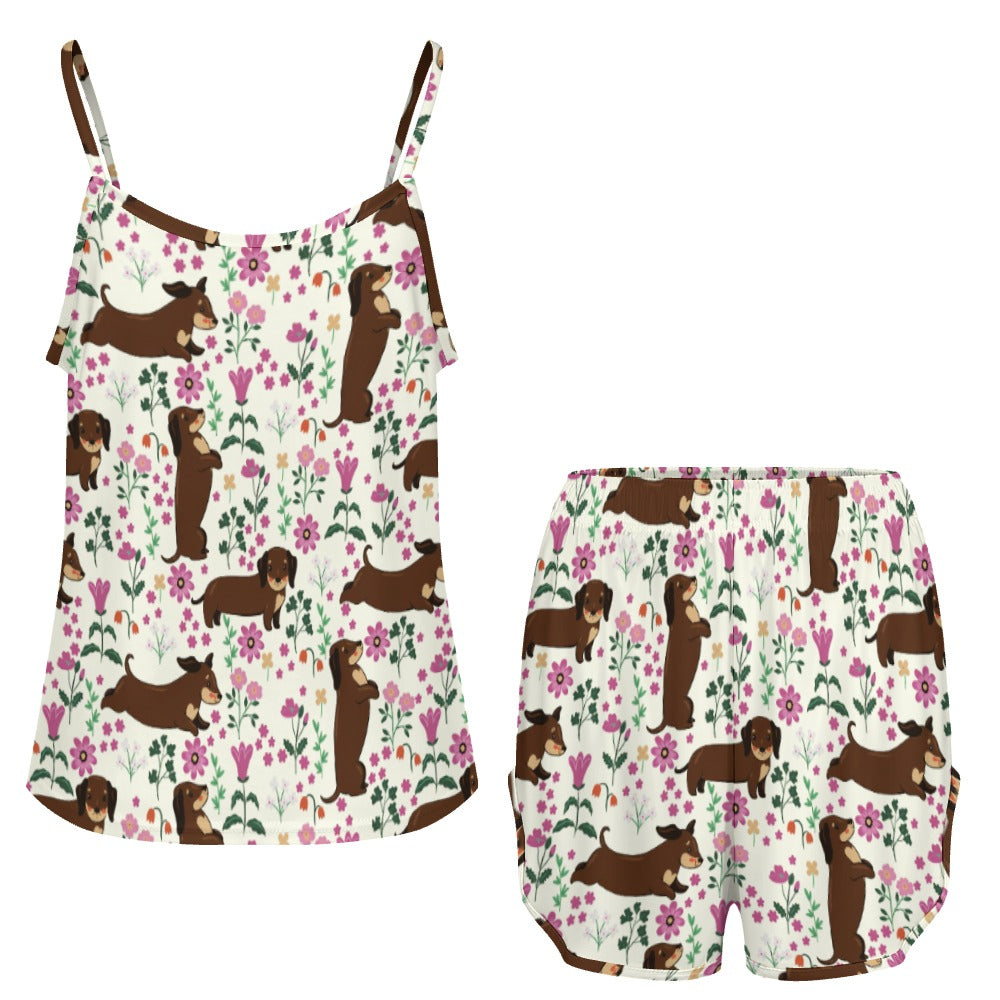 Flower Garden Chocolate Dachshund Women's Cami and Shorts Pajama Set