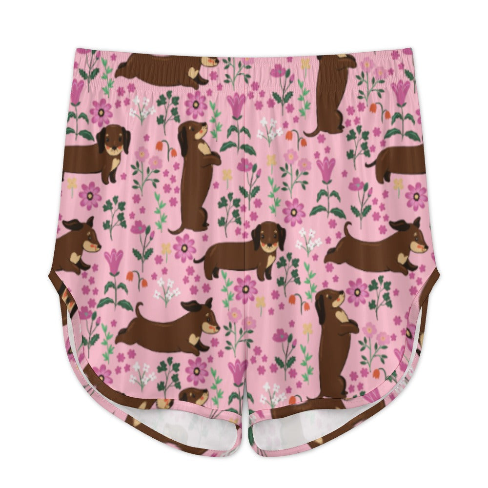 Flower Garden Chocolate Dachshund Women's Cami and Shorts Pajama Set-18