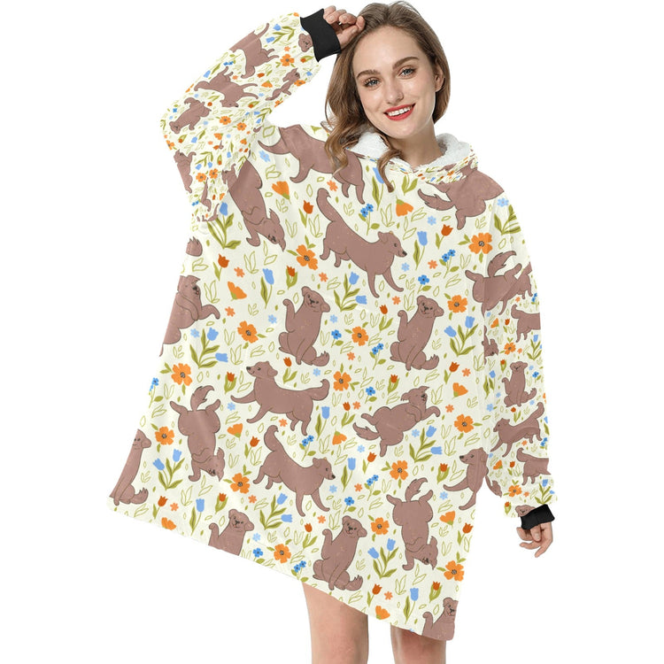 Flower Garden Chocolate Labradors Blanket Hoodie for Women - 4 Colors